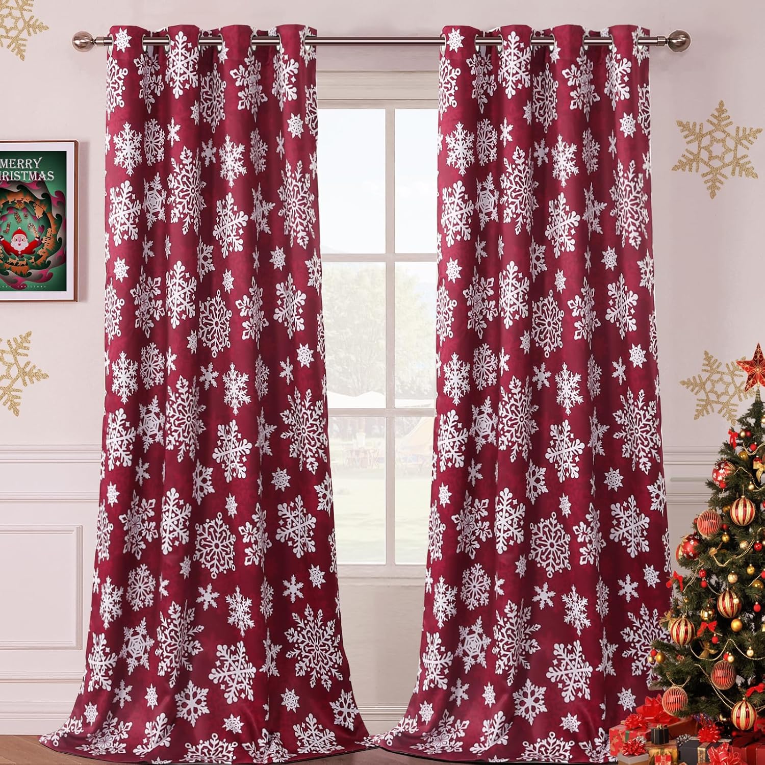 Christmas Curtains for Living Room Thermal Insulated Snowflake Pattern Curtains 84 Inch Length 2 Panels Set Winter Snow Grommet Window Curtain Drapes for Bedroom Holiday Xmas Decor Red