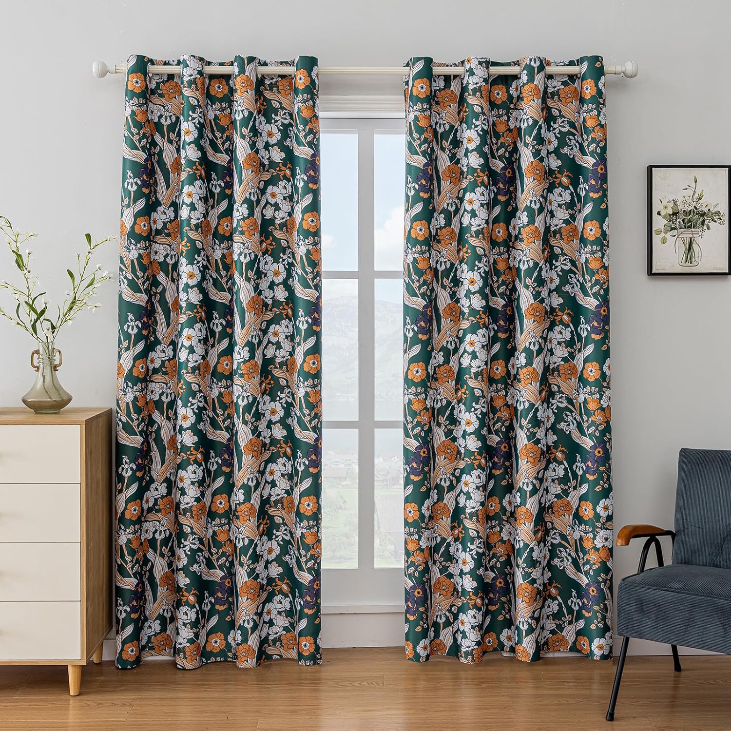 - UNIQUE DECOR: The dark green curtains print vintage orange wildflowers.The eclectic design is full of artistic feelings,transfer your room to be pretty garden and no longer monotonous. The pattern can be used to enhance any farmhouse or cottage style decor.